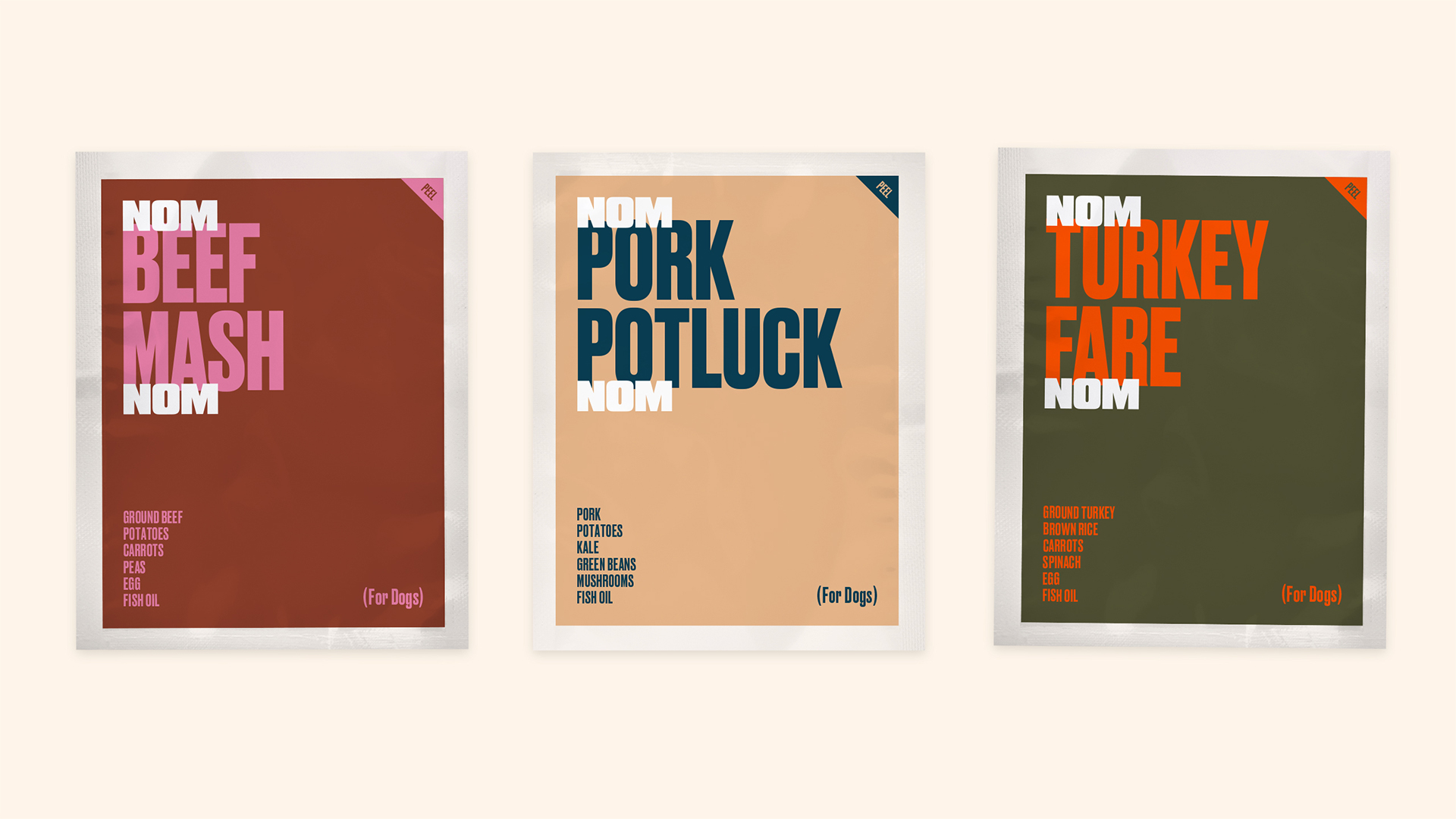 A bold and punchy name and visual idenity system for a fresh pet food company that showcases the natural excitement and energy that comes from eating real, good food.